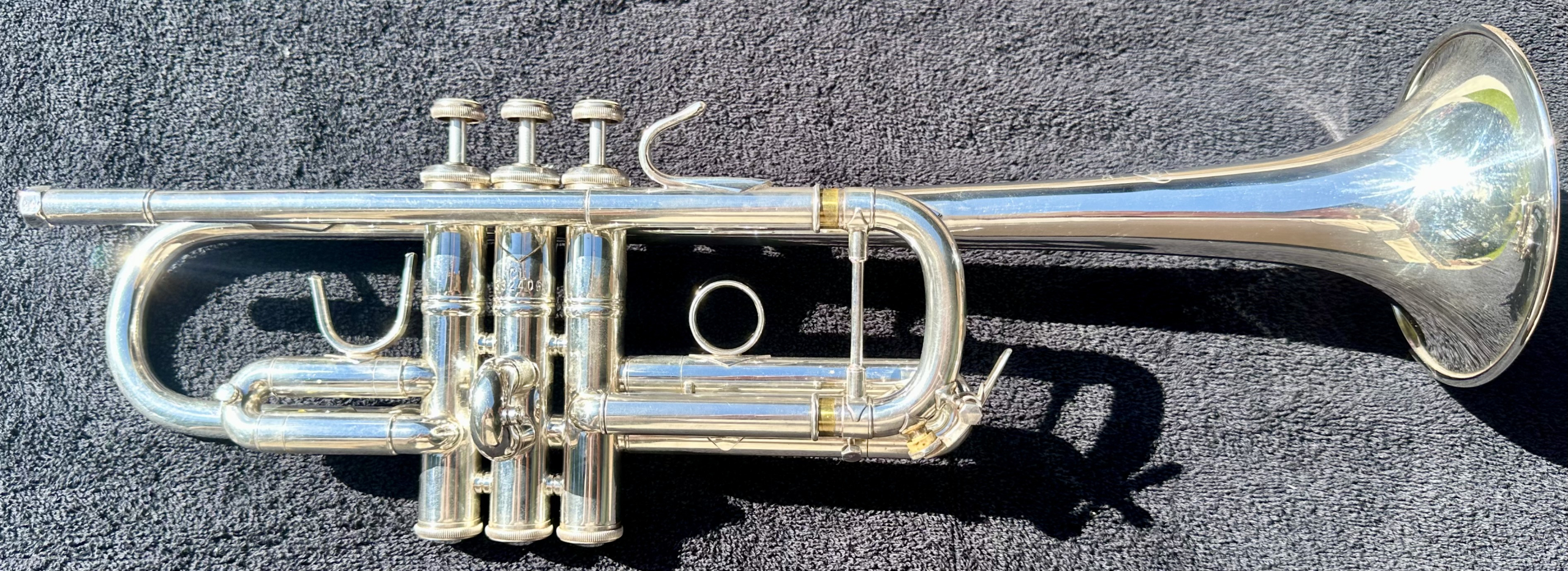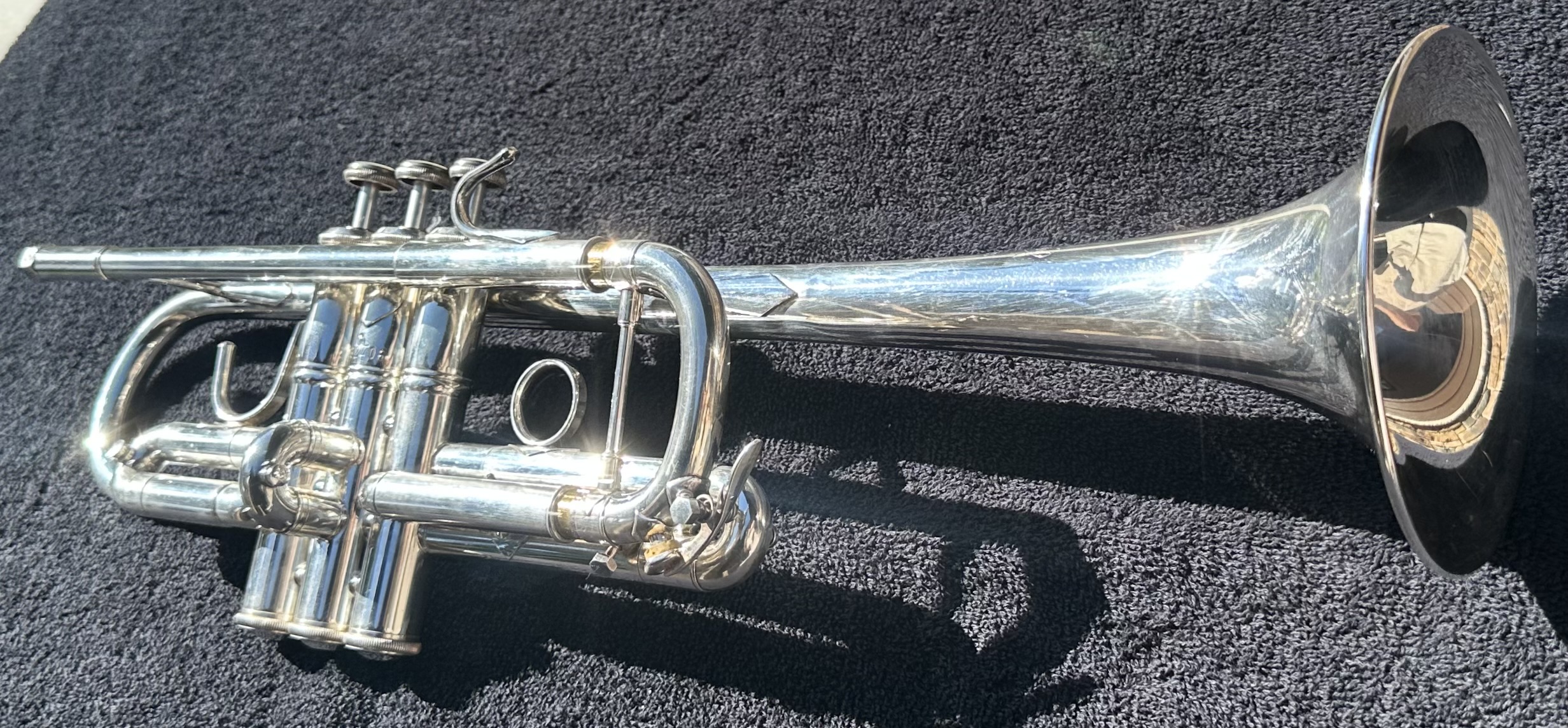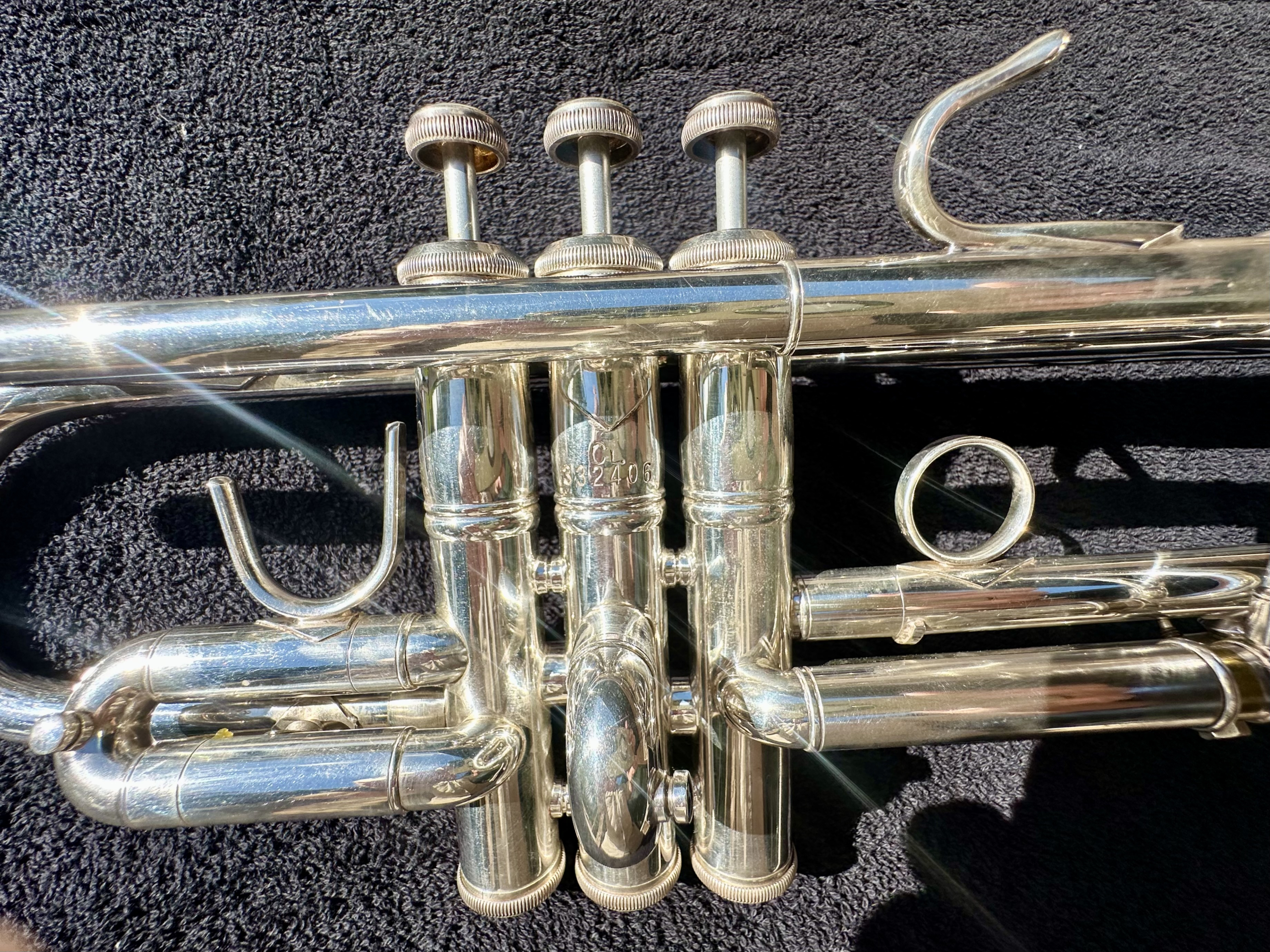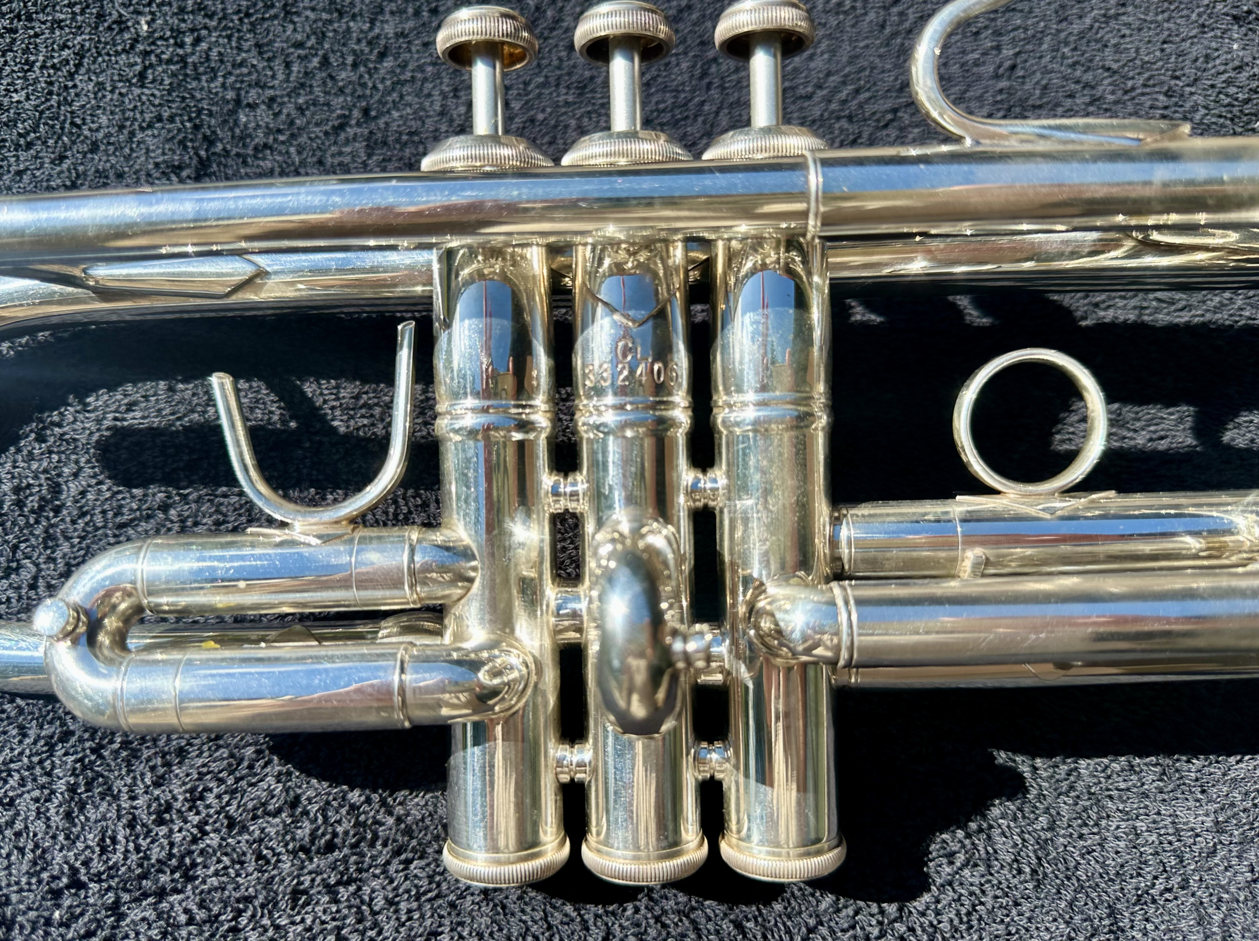 Manufactured probably around Vincent Bach death – 1989 Excellent playing horn perfect for studio, solo, and Chamber playing. Very easy to play with a big sound. Valves are fast and have lots of compression.