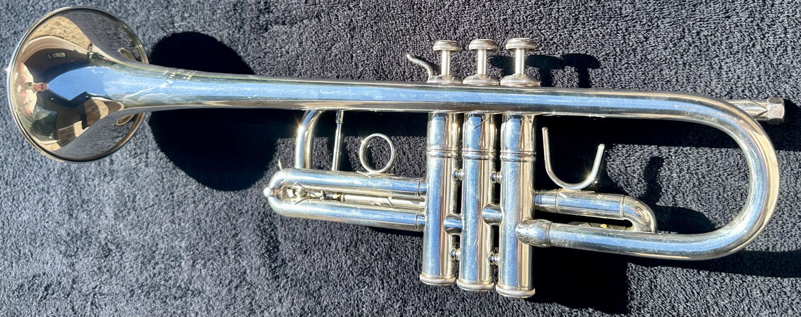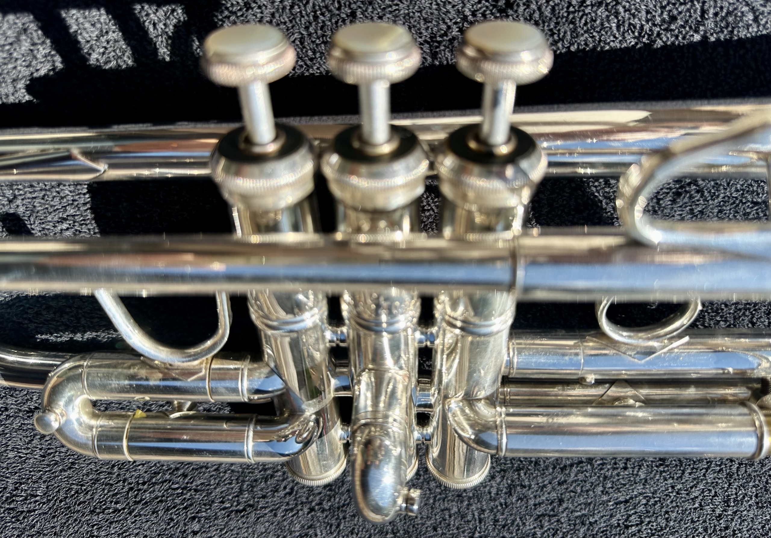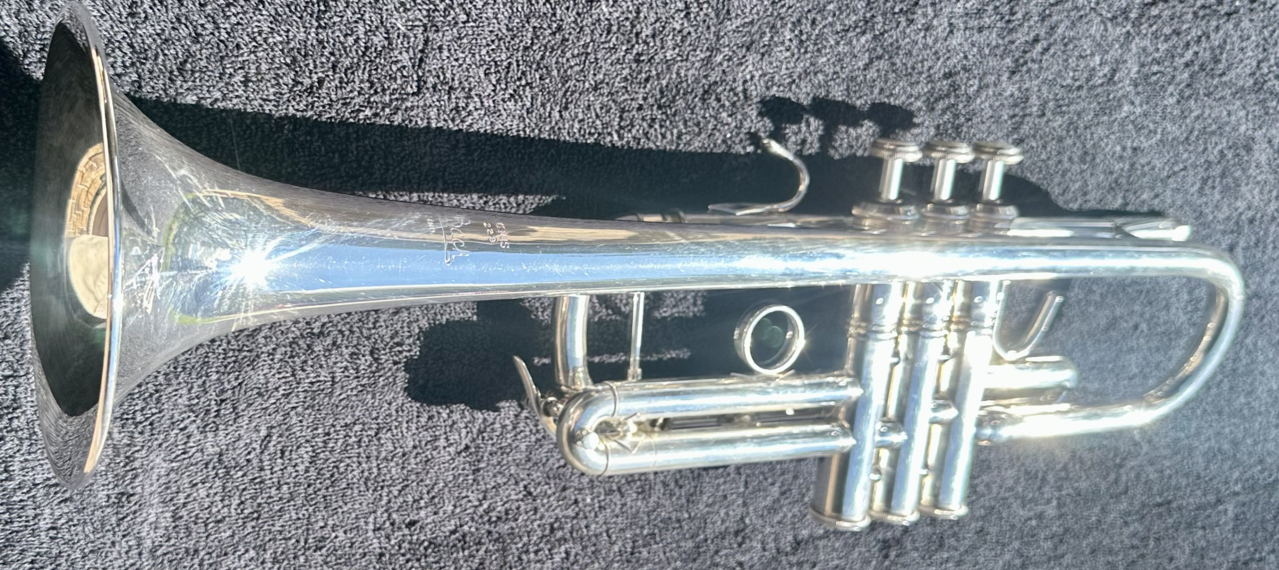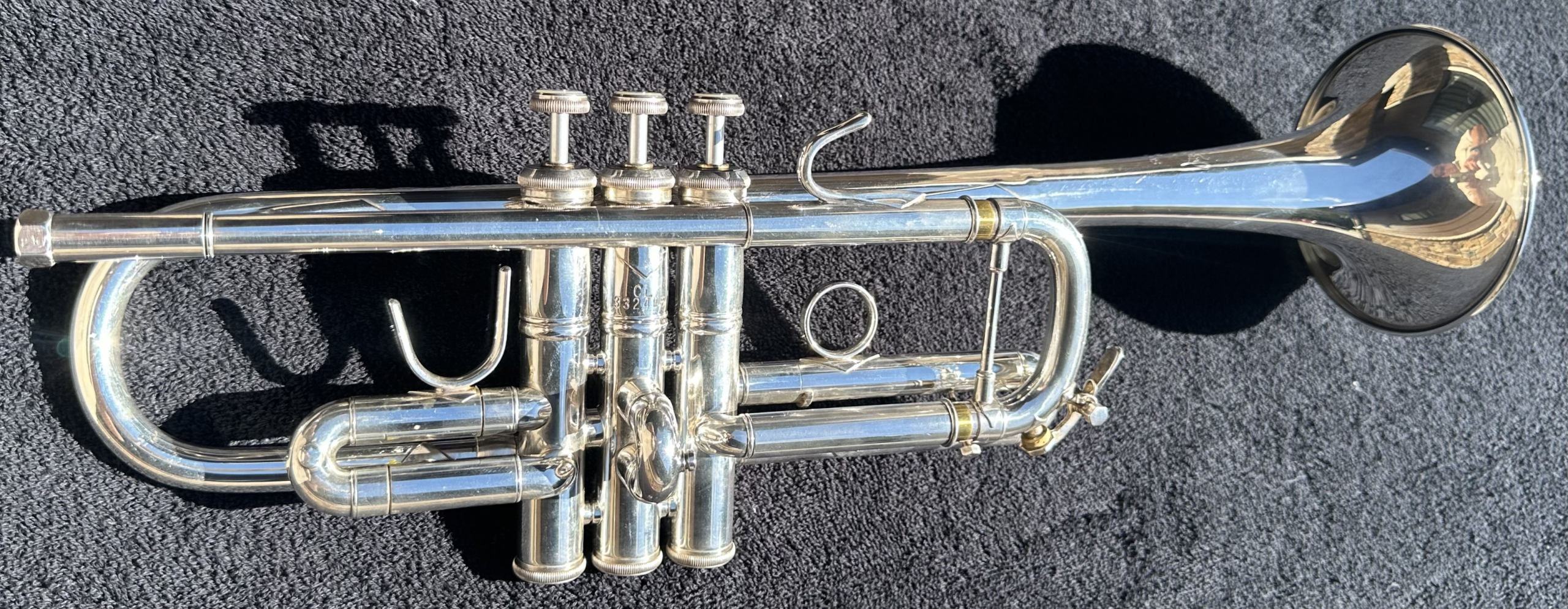 Manufactured probably around Vincent Bach death – 1989 Excellent playing horn perfect for studio, solo, and Chamber playing. Very easy to play with a big sound. Valves are fast and have lots of compression.