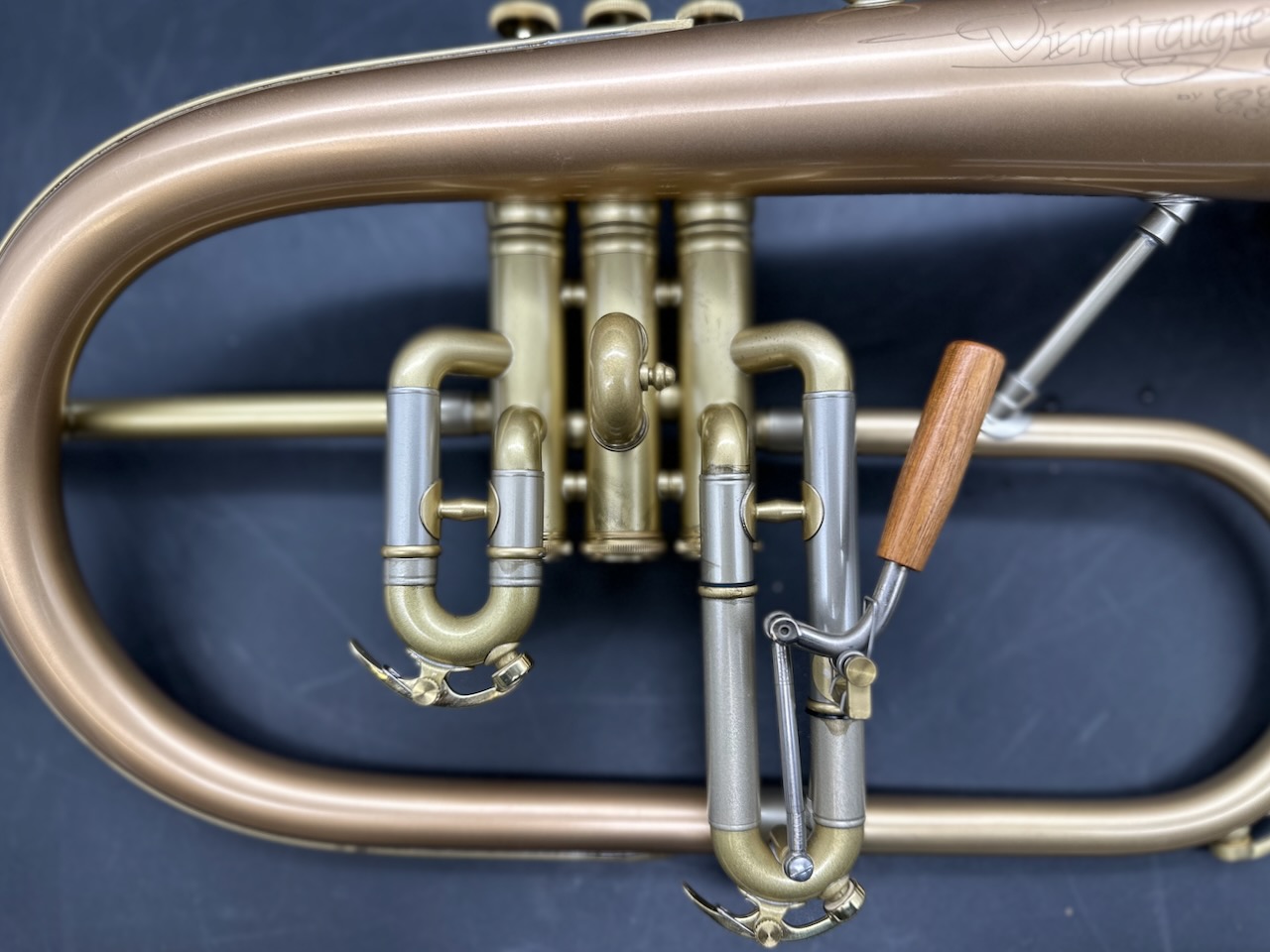 The Rose Brass Bell and Branch are at the heart of the luscious tone of the Conn Vintage One Flugel Horn. This heavier alloy increases the mass of the horn leading to it’s darker tone. However, due to the exceptional construction quality and the low impact bracing, the performance response of the horn is not hindered by the heavier alloy as it is with other horns. All Conn Vintage One Flugel Horn models feature this Hand-Hammered One-Piece Rose Brass Bell.