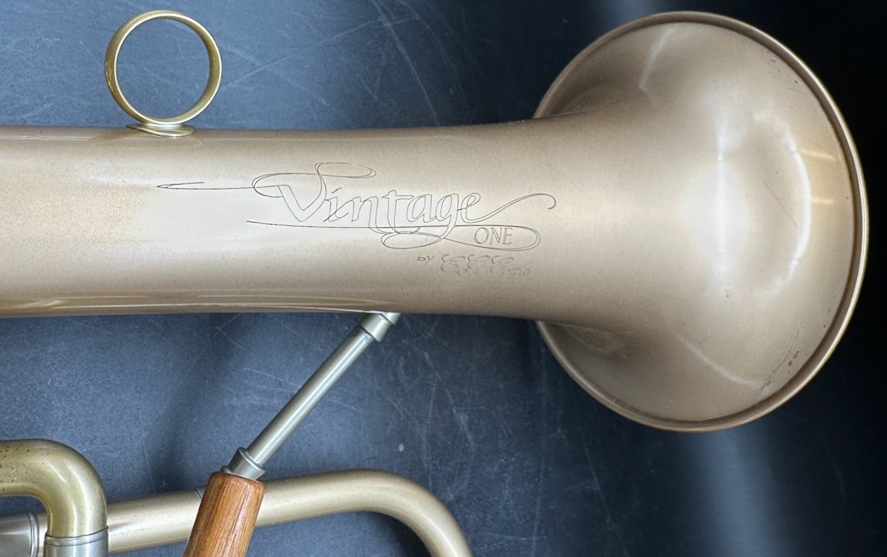 The Vintage One 1FR-SLB flugelhorn was designed to be well balanced and compatible with the player’s concept of sound. It combines a responsive .413″ bore and a slightly warm resonant one-piece hand-hammered gold brass bell reinforced with a bell bow guard to produce a beautiful, warm, luscious sound.