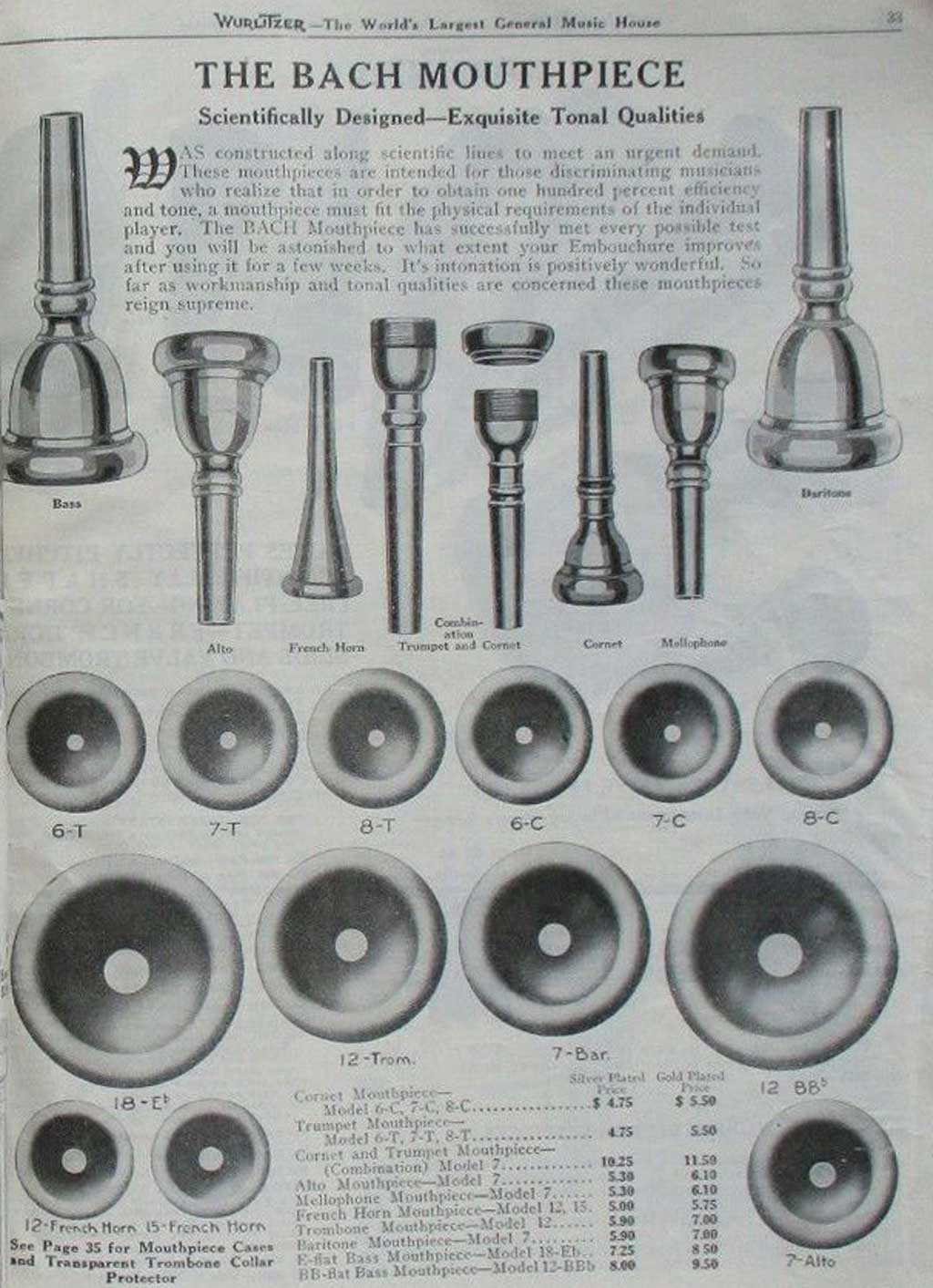 Also, the Cornet & Trumpet models included a ‘C’ or ‘T’ It is believed that was just for the Wurlitzer Company to tell the difference when fulfilling the mouthpiece ordered.