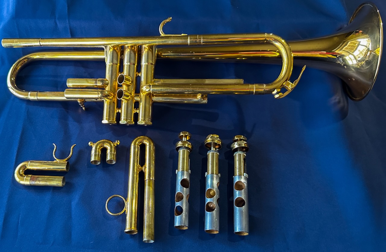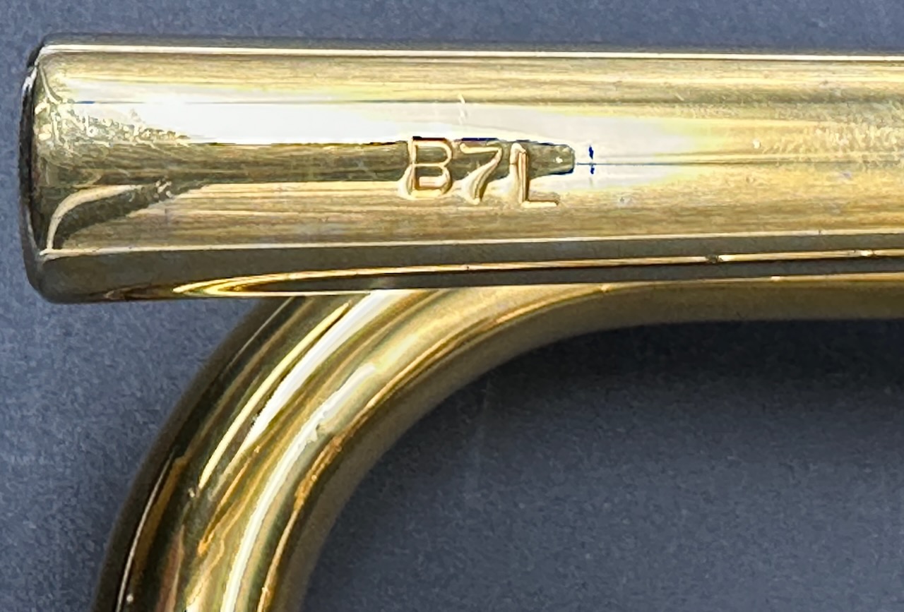 Large (A or # 1) bell Model numbers which include an ‘L’ (as in ‘B7L’) are for trumpets that are built with tuning bells. These are each ‘Step bore’ designs where the bore of the horn expands through the leadpipe, tuning slide and tuning slide bow, and valve slide bows, opening up the horn and making it freer blowing. Although unadvertised, the B6 has a standard weight pure copper bell (not the lightweight beryllium bell) that it shares with the B5. This B7Lb has a  Beryllium  Bell ( Copper) B7L Trumpets are among the more popular Schilke models and the very popular Yamaha YTR 6310Z is based upon this design, although the Schilke models are slightly larger in bore size than the Yamaha. They are easy playing and do not take a lot of air to fill up. More Pictures upon request. Here’s a video of the same model horn I recorded in November of 2012