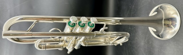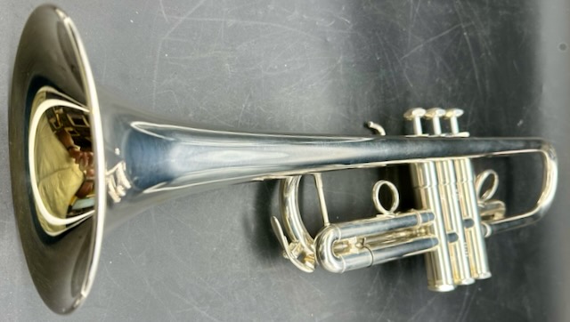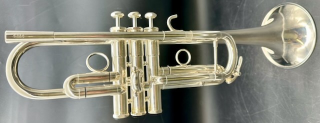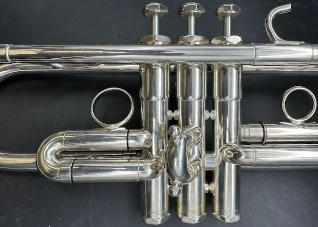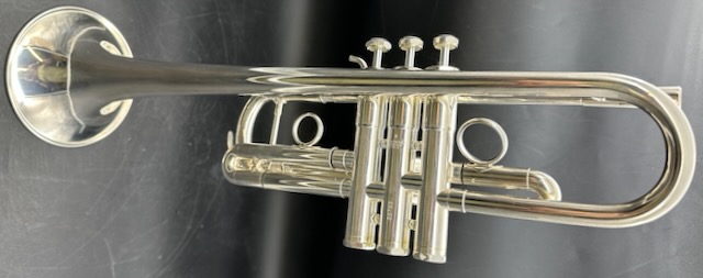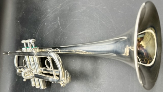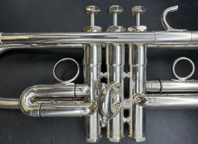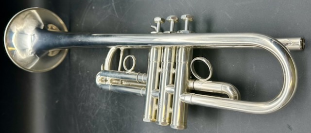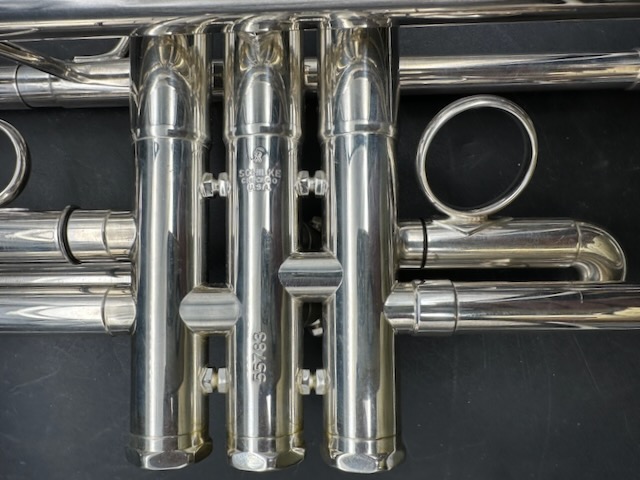 This horn is “LIKE NEW” with just a few swirls in the silver plate.  No Dents, Dings, or Trauma. Valves are perfect with excellent “POP” compression.  Slides are fast and smooth.