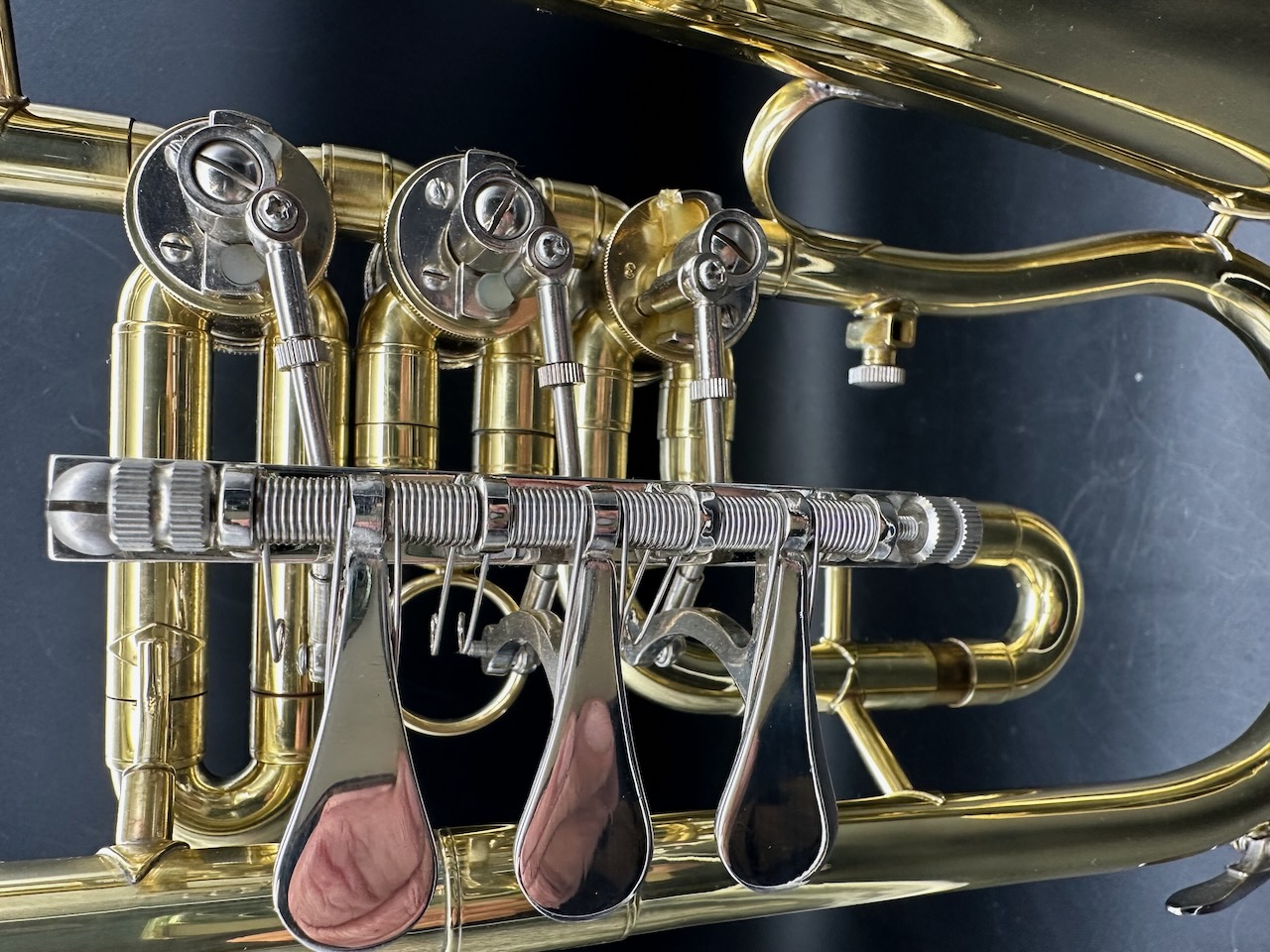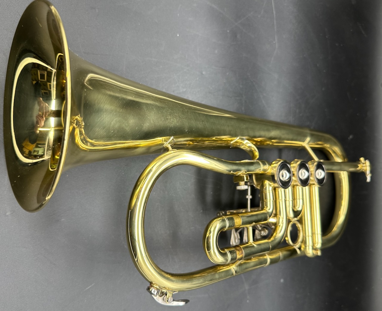 This horn was part of a trade package. The good news is that it play very good with a large Flugel Shank or Trumpet Mouthpiece.