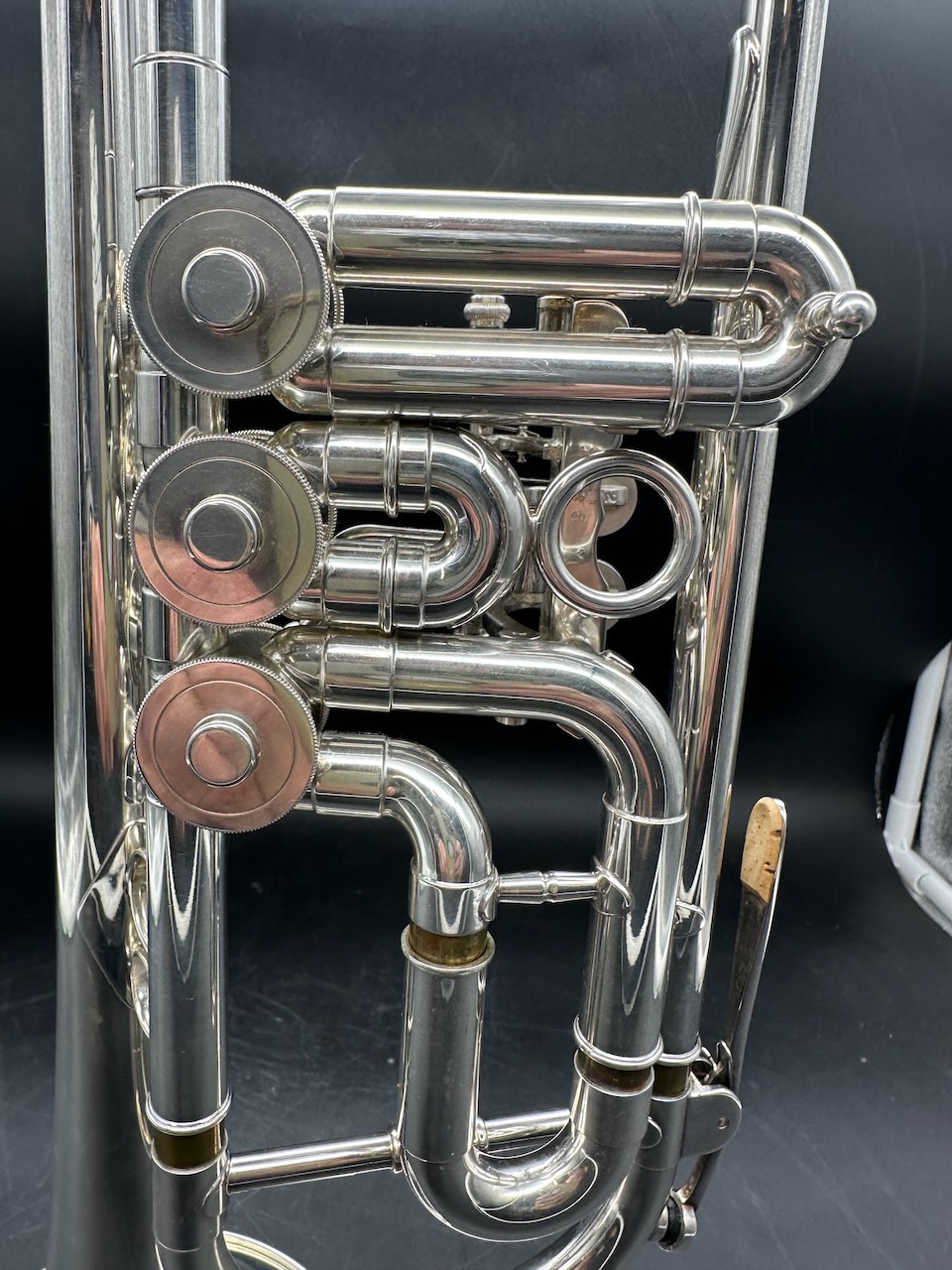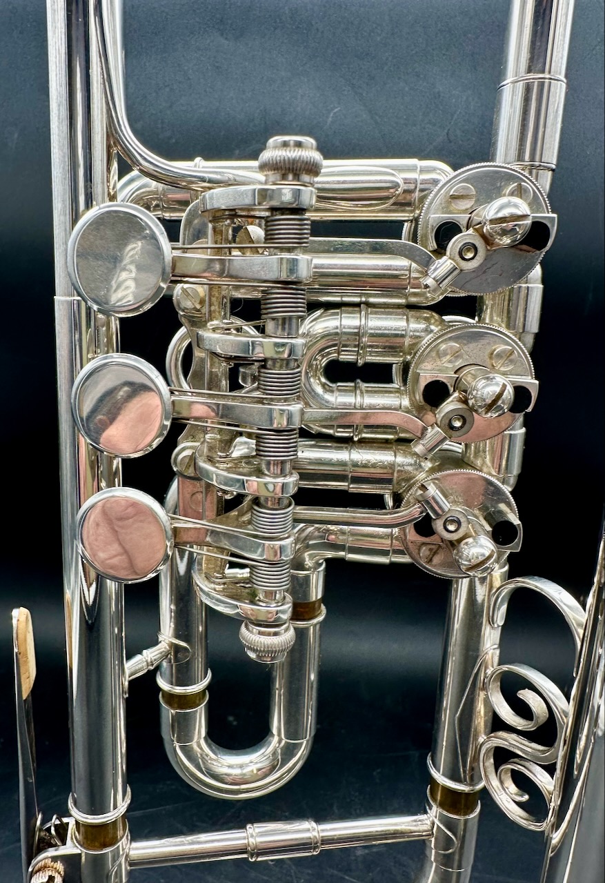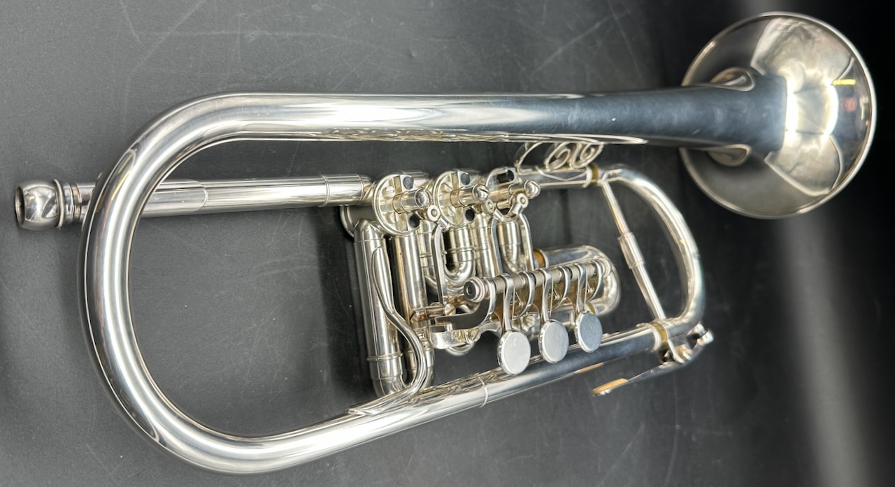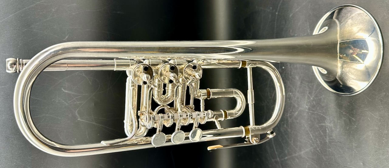 It is a discontinued, rare model that was designed as a copy of a legendary German rotary trumpet made by Heckel.