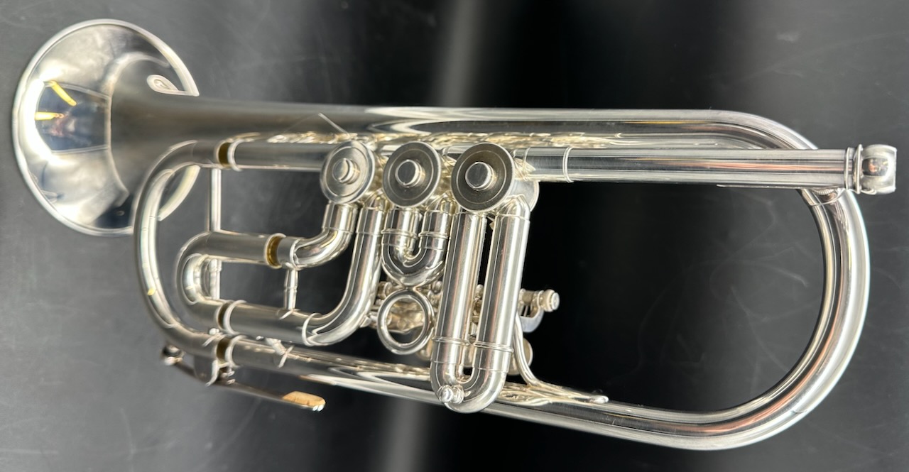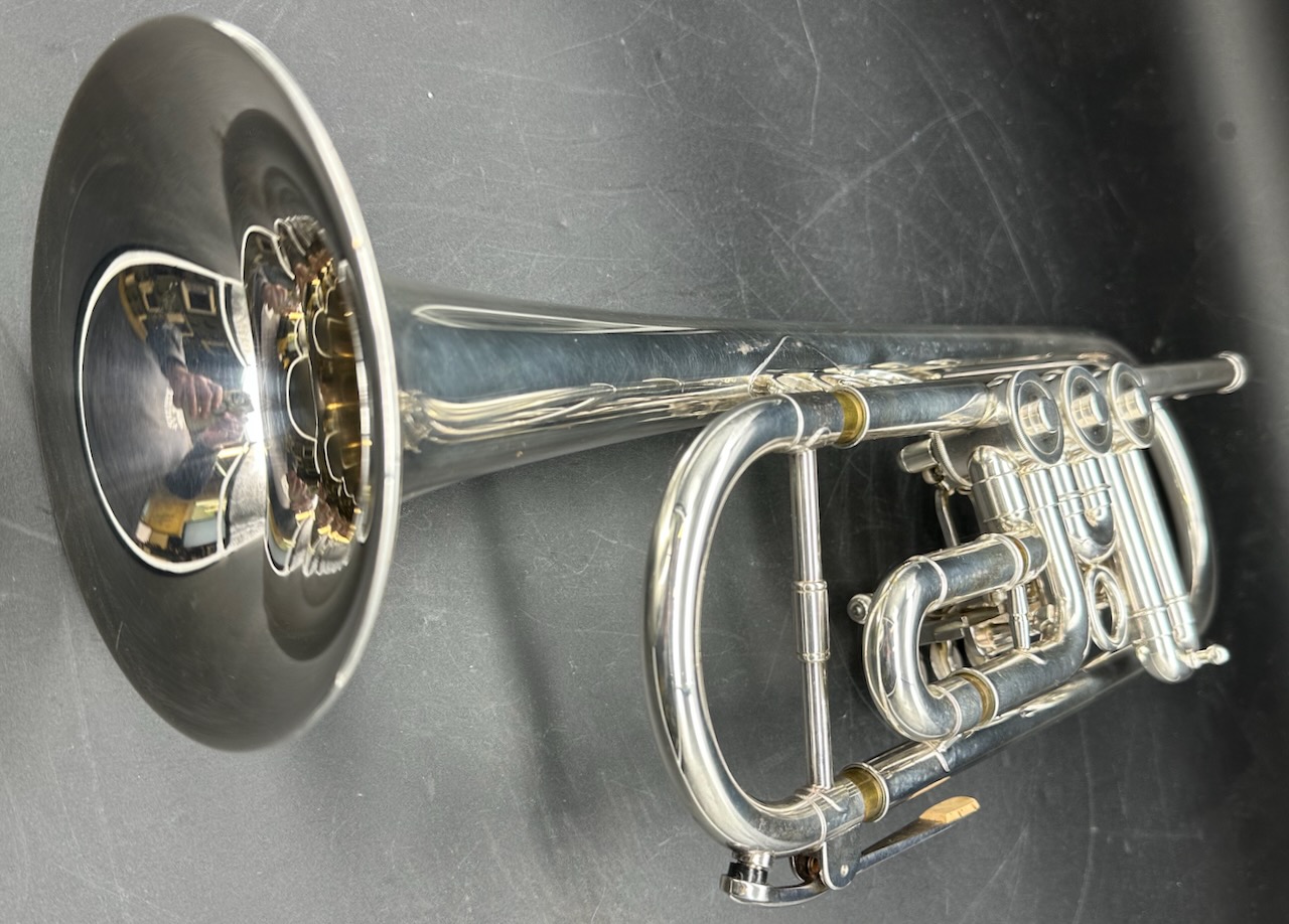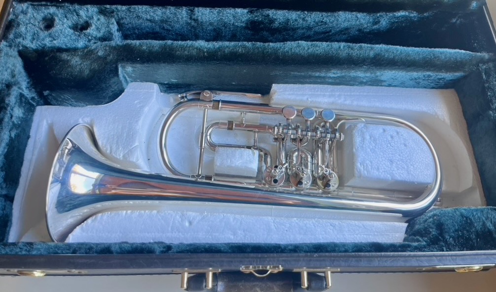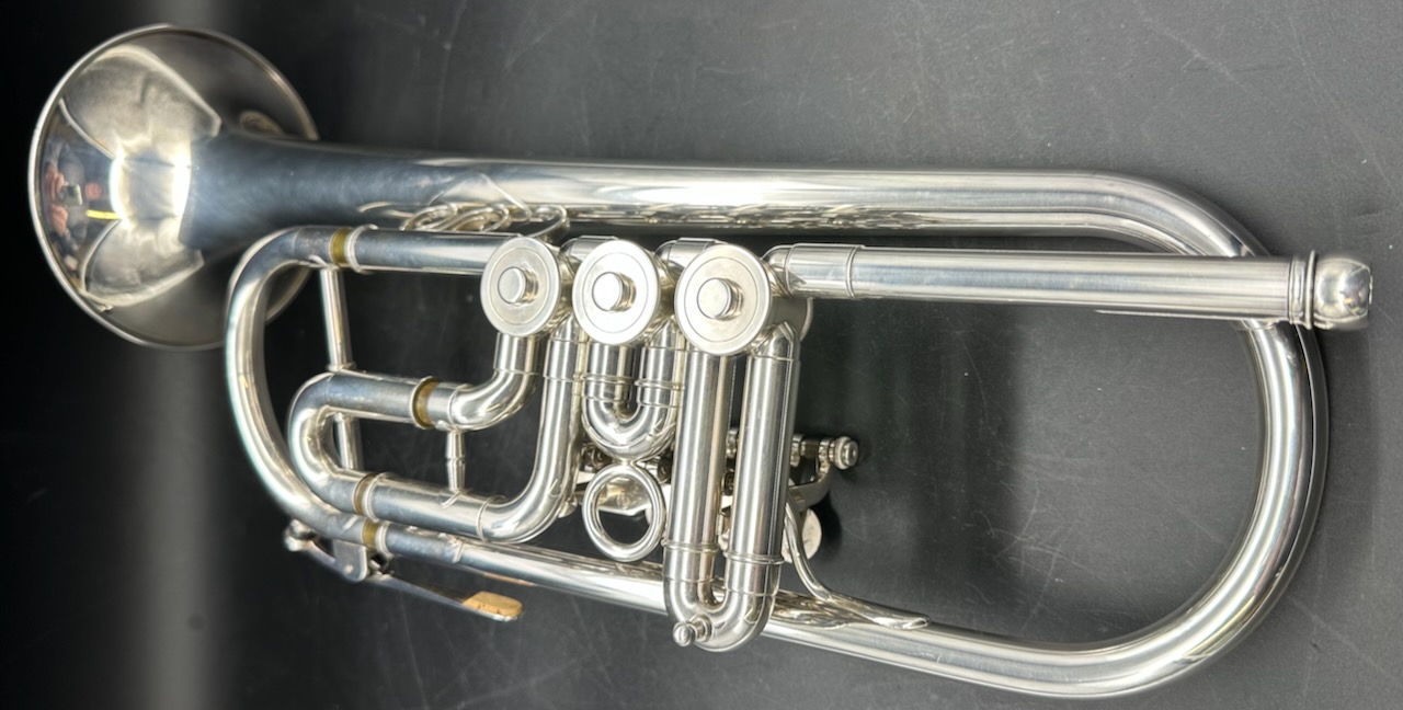 It is a discontinued, rare model that was designed as a copy of a legendary German rotary trumpet made by Heckel.
